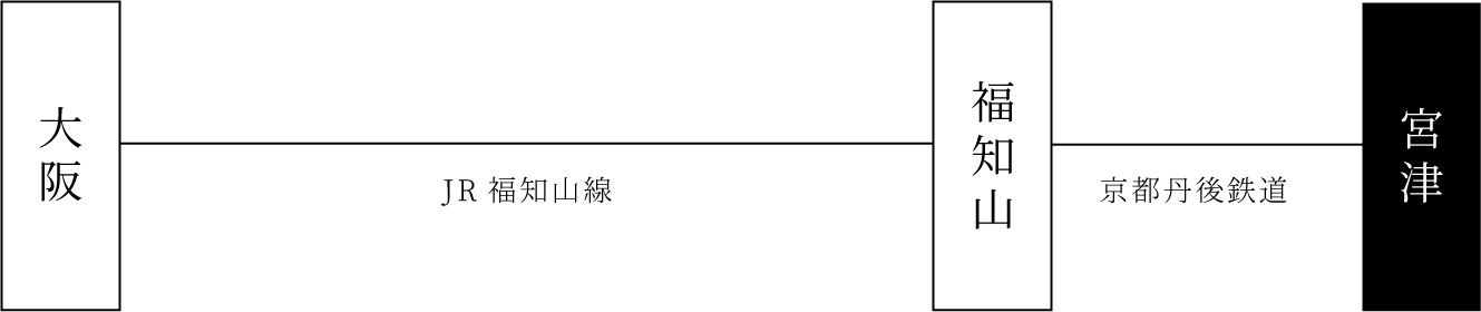 JR福知山線「大阪」駅乗車 → 「福知山」駅で京都丹後鉄道に乗り換え